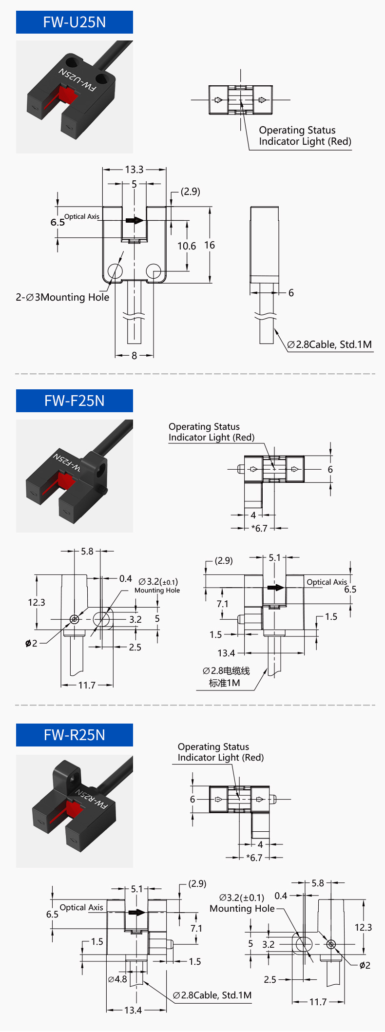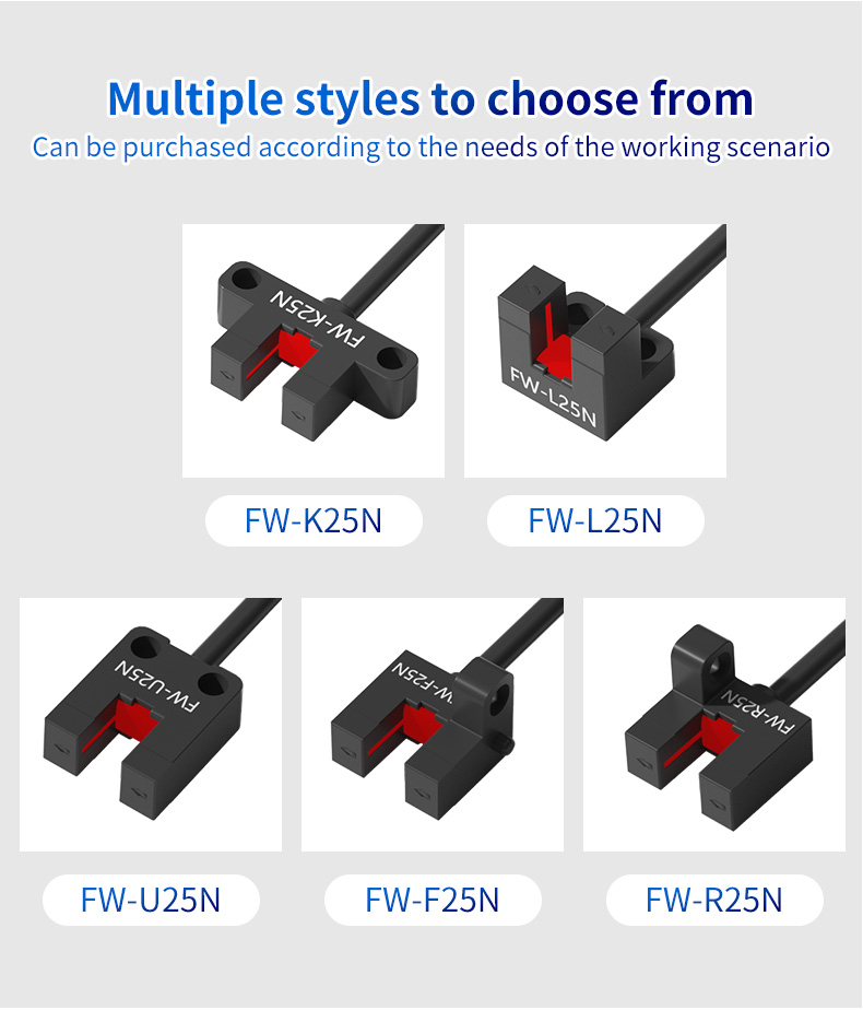 Trwałość nie podlega negocjacjom w środowiskach przemysłowych. Seria FW25 charakteryzuje się jednoczęściową, integralną konstrukcją obudowy, która zapewnia wyjątkowy efekt ochronny. Ta monolityczna konstrukcja zapewnia:Wysoki stopień ochrony (IP): skutecznie uszczelniona przed kurzem, olejem i chłodziwami, zapewniając niezawodną pracę w brudnych lub mokrych warunkach.Wytrzymałość mechaniczna: wytrzymuje wibracje, wstrząsy i przypadkowe uderzenia, chroniąc wrażliwe elementy wewnętrzne.Długoterminowa niezawodność: Uszczelniona obudowa zapobiega zanieczyszczeniom wewnętrznym, częstym punktom awarii w mniejszych czujnikach, znacznie wydłużając żywotność produktu.4. Wiele stylów dla elastycznej integracji
