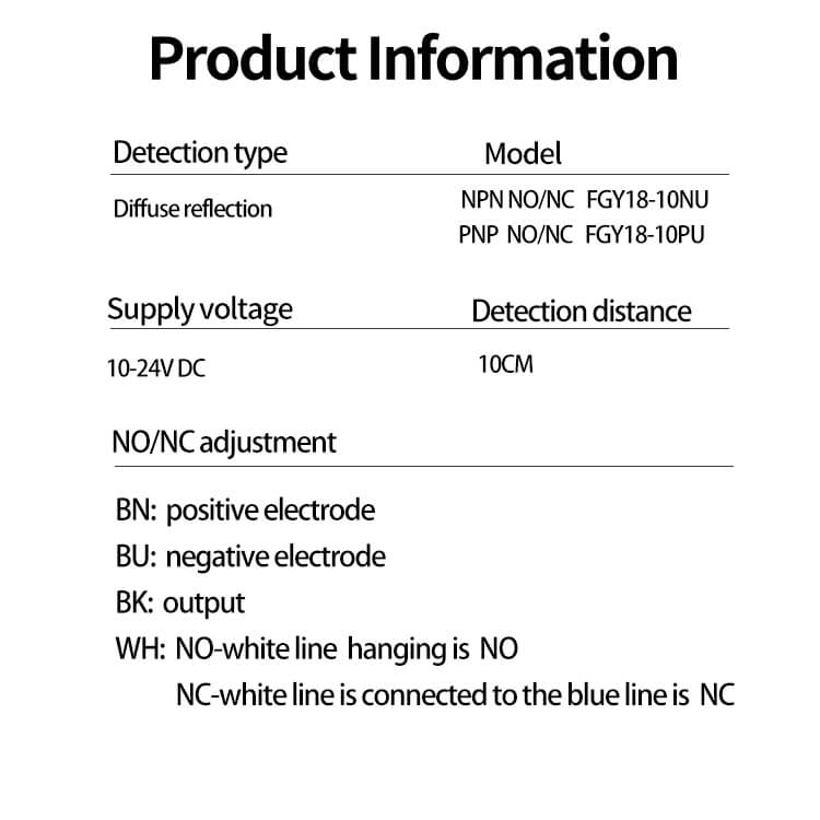 Podsumowując, czujnik fotoelektryczny odległości wykrywania Fuwei FGY18-10NU to wysokiej jakości, niezawodny i konfigurowalny produkt, który oferuje wyjątkowe możliwości wykrywania. Wspierany przez doskonałość produkcji w Chinach, jest to idealny wybór do wszelkich zastosowań przemysłowych, które wymagają precyzji i dokładności. Zaufaj Fuwei przy swoim kolejnym projekcie i poznaj różnicę między naszymi produktami.