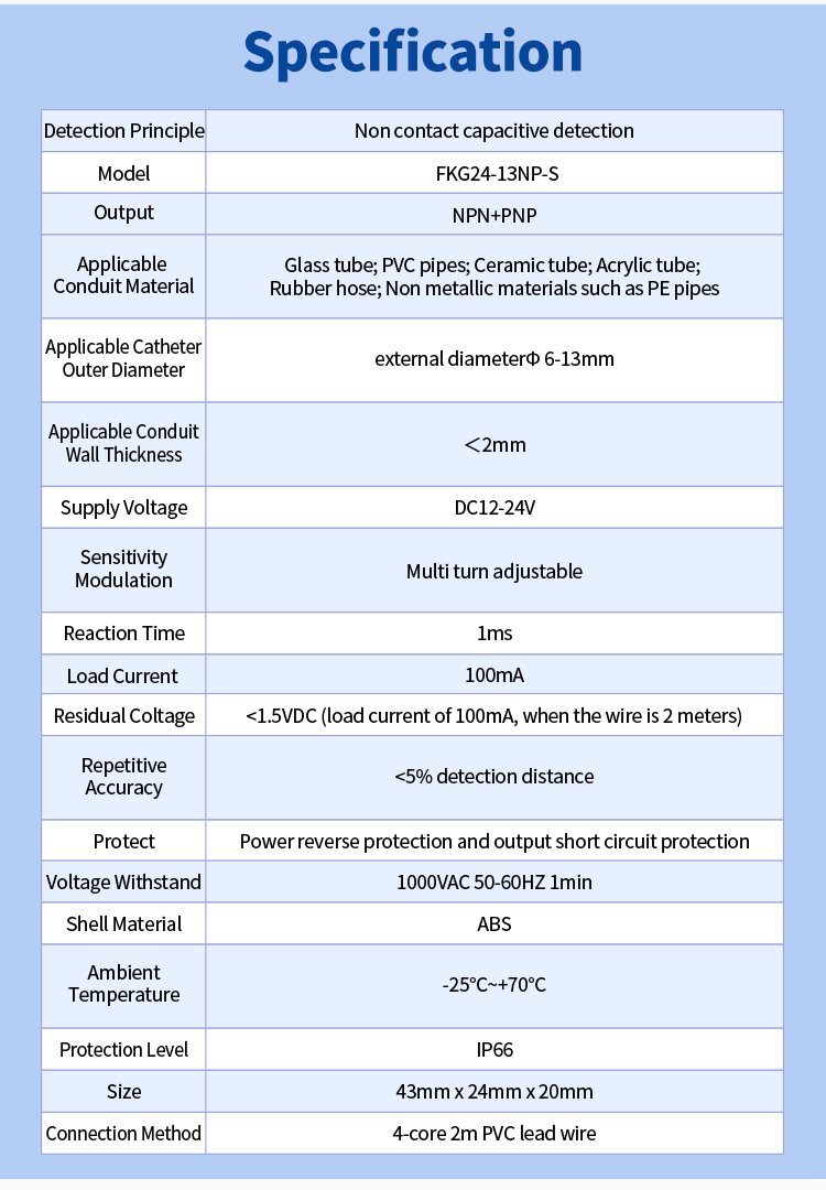 FKG24-13NP-S Niski poziom detekcji kondensatora rurki Zasada pojemnościowa pojemnościowa, nie jest łatwo wpływ