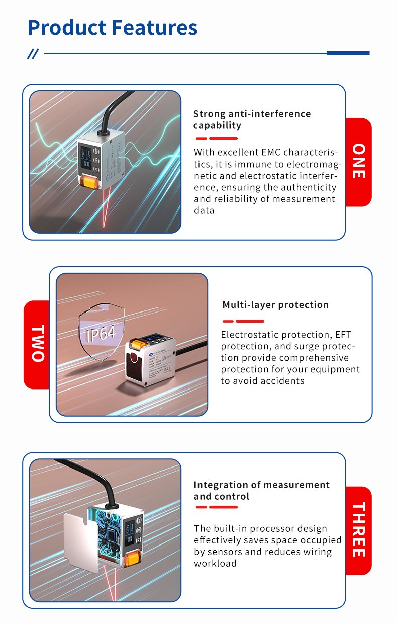 Przedstawiamy laserowy czujnik odległości serii FLRS, wysokowydajne rozwiązanie zaprojektowane z myślą o dokładnych i niezawodnych pomiarach na duże odległości. Wykorzystując zaawansowaną technologię Time-of-Flight (TOF) z tłumieniem tła, czujnik ten oferuje elastyczne zakresy wykrywania do 5 m lub 10 m, dzięki czemu nadaje się do różnych zastosowań przemysłowych. Zaprojektowany z myślą o doskonałych właściwościach przeciwzakłóceniowych i doskonałych właściwościach EMC, skutecznie przeciwstawia się zakłóceniom elektromagnetycznym i elektrostatycznym, zapewniając spójne i wiarygodne dane w wymagających środowiskach.