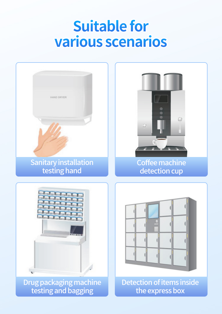 Ta zdolność „filtrowania przestrzennego” umożliwia wyróżnianie się w scenariuszach wymagających precyzyjnego osądu pozycji, takich jak wykrywanie ręki w urządzeniach higienicznych i monitorowanie zakresów roboczych robotów robotycznych.