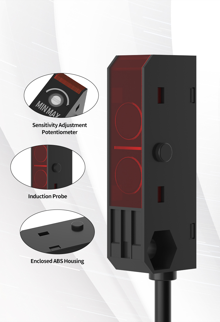 Jego dobra odporność na zakłócenia światła sprawia, że jest w stanie stabilnie i dokładnie wykrywać w środowiskach zewnętrznych lub warsztatach ze złożonym oświetleniem. Projekt źródła światła Red Point nie tylko sprawia, że wyrównanie działa prosta i łatwa, ale także umożliwia stabilne wykrywanie małych obiektów, nawet części milimetrów nie mogą uciec od „oczu”. Ta seria, jako czujnik retro-refleksyjny, jest łatwy do wykrycia częściowo przenoszących i nieprzejrzystych obiektów, które są szeroko stosowane w opakowaniach żywności, przetwarzaniu tworzyw sztucznych i innych branżach.