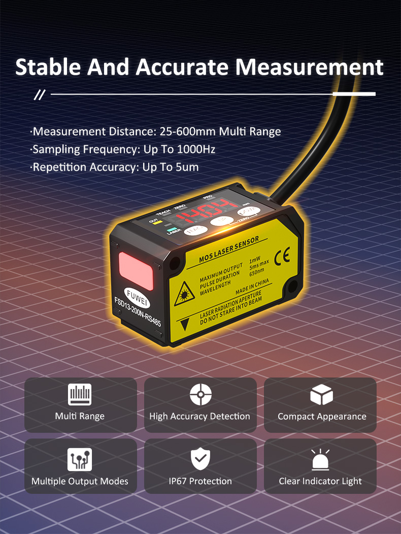 W dziedzinie automatyzacji przemysłowej bardzo precyzyjne pomiary przemieszczenia o wysokiej niezawodności zawsze były podstawową gwarancją wydajności produkcji i jakości produktu. Nowo uruchomione elektremenalię Fuwei ElectronicsCMOS Laser Sensor czujnik Seria FSD13, z przełomowym projektem technicznym i rygorystycznymi standardami klasy przemysłowej, zapewnia „precyzję na poziomie milimetrowym i stabilność na poziomie mikrometru” inteligentne rozwiązania wykrywania dla branż, takich jak produkcja mechaniczna, opakowanie elektroniczne i opakowanie żywności, redefiniowanie standardów pomiarowych w złożonych warunkach operacyjnych.