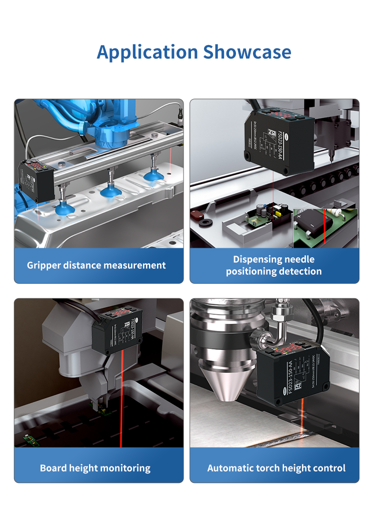 Tradycyjne czujniki są często zmuszone do dostosowania wielu modeli sprzętu ze względu na wąski zakres (takie jak stały zakres wykrywania 30 mm), co powoduje wzrost kosztów wdrażania linii produkcyjnej. Czujniki laserowe serii FSD23, jednak zdają sobie sprawę, że stale regulowany zakres wykrywania od 10 mm do 250 mm poprzez technologię dynamicznego koncentracji modułu optycznego, która jest odpowiednia dla wszystkich scenariuszy, od połączeń lutowniczych z mikronami po blachy motoryzacyjne.