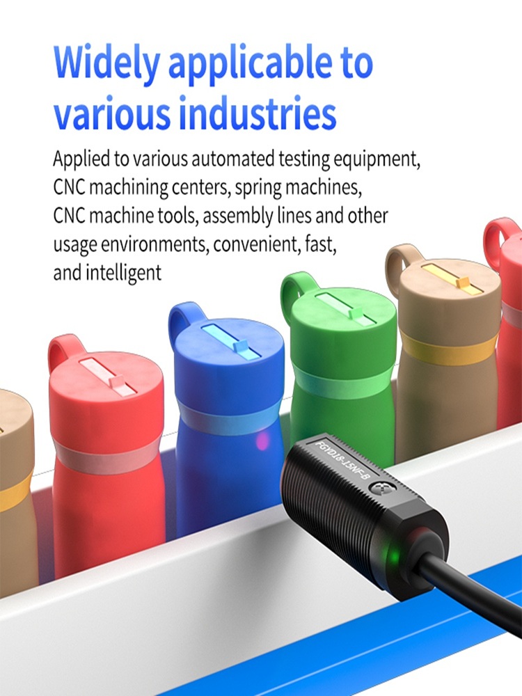 Po trzecie, szerokie zastosowanie w przemyśle podkreśla jego wszechstronność. Precyzyjne czujniki fotoelektryczne serii FGYD18 mogą być szeroko stosowane w różnych zautomatyzowanych urządzeniach kontrolnych, centrach obróbczych CNC, maszynach sprężynowych, obrabiarkach CNC i liniach montażowych. Jego inteligentna konstrukcja umożliwia szybką i łatwą instalację oraz obsługę, bezproblemowo integrując się z istniejącymi systemami. Na przykład na produkcyjnych liniach montażowych wykrywa położenie najdrobniejszych komponentów, aby zapewnić precyzję montażu; w magazynach logistycznych zwiększa efektywność systemów sortujących. To szerokie zastosowanie wynika z technologii tłumienia tła, która utrzymuje wysoką wydajność w różnych scenariuszach, aby sprostać różnorodnym wymaganiom.