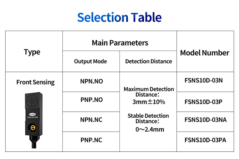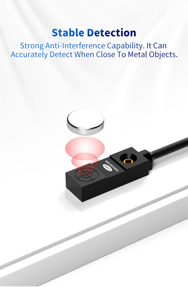 Zanim zagłębimy się w specyfikacje techniczne, wyjaśnijmy podstawową wartość, jaką FSNS10D-03N wnosi do Twojego systemu: Osiągnij wykrywanie „zero defektów” przy niezrównanej stabilności: Zaprojektowany z myślą o stabilnych możliwościach wykrywania i silnych właściwościach przeciwzakłóceniowych, ten czujnik niezawodnie ignoruje otaczające metale i szumy elektryczne. Przekłada się to bezpośrednio na krótsze przestoje, wyższą jakość produktu i niższe koszty konserwacji. Odblokuj wyższe prędkości dzięki inteligentnej reakcji: Zintegrowany inteligentny chip zapewnia wyjątkowo szybką reakcję, umożliwiając precyzyjne wykrywanie w szybkich zautomatyzowanych procesach. Pozwala to wydłużyć czas cykli i zmaksymalizować przepustowość bez utraty dokładności. Pokonaj wyzwania związane z przestrzenią i środowiskiem: Kompaktowa konstrukcja pozwala na łatwą instalację w różnych wąskich przestrzeniach montażowych. W połączeniu z wodoodpornością i pyłoszczelnością IP67 działa niezawodnie w środowiskach, w których inne czujniki zawiodłyby, oferując niezrównaną elastyczność i trwałość instalacji. Uprość integrację dzięki wszechstronności podwójnego wykrywania: wyjątkowe w swojej klasie dwa tryby wykrywania pozwalają dostosować zachowanie czujnika do konkretnych rzeczywistych warunków instalacji. Ten
