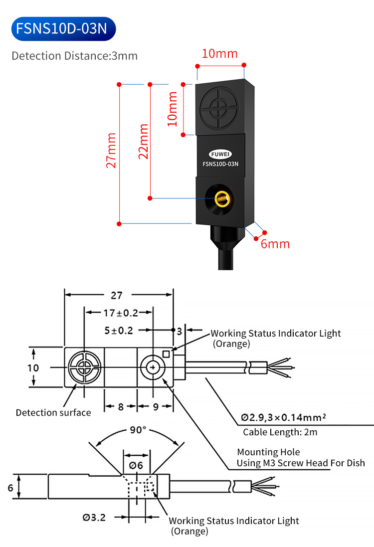 Chiny Kwadratowy indukcyjny czujnik zbliżeniowy FSNS10D-03N Dostawca, producent - Cena fabryczna - Fuwei Kwadratowy indukcyjny czujnik zbliżeniowy FSNS10D-03N