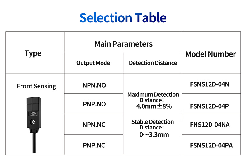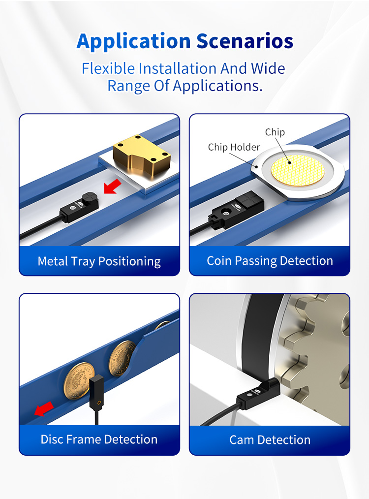 Solidny zestaw funkcji FSNS12D-04N sprawia, że jest on wyjątkowo wszechstronny w szerokim spektrum branż: Pozycjonowanie tac metalowych: zapewnia precyzyjne wykrywanie lokalizacji w zautomatyzowanych systemach przechowywania i wyszukiwania (ASRS) oraz na potrzeby kierowania pojazdami AGV. Wykrywanie ramki dysku: zapewnia niezawodne wykrywanie obecności uchwytów dysków w produkcji półprzewodników i montażu elektroniki. Wykrywanie przejścia monety: umożliwia dokładne liczenie i sprawdzanie poprawności w automatach, salonach gier i placówkach finansowych kiosks.Cam Detection: Monitoruje położenie, prędkość i czas krzywek w zautomatyzowanych maszynach i obrotowych indeksatorach w celu precyzyjnego sterowania sekwencyjnego.