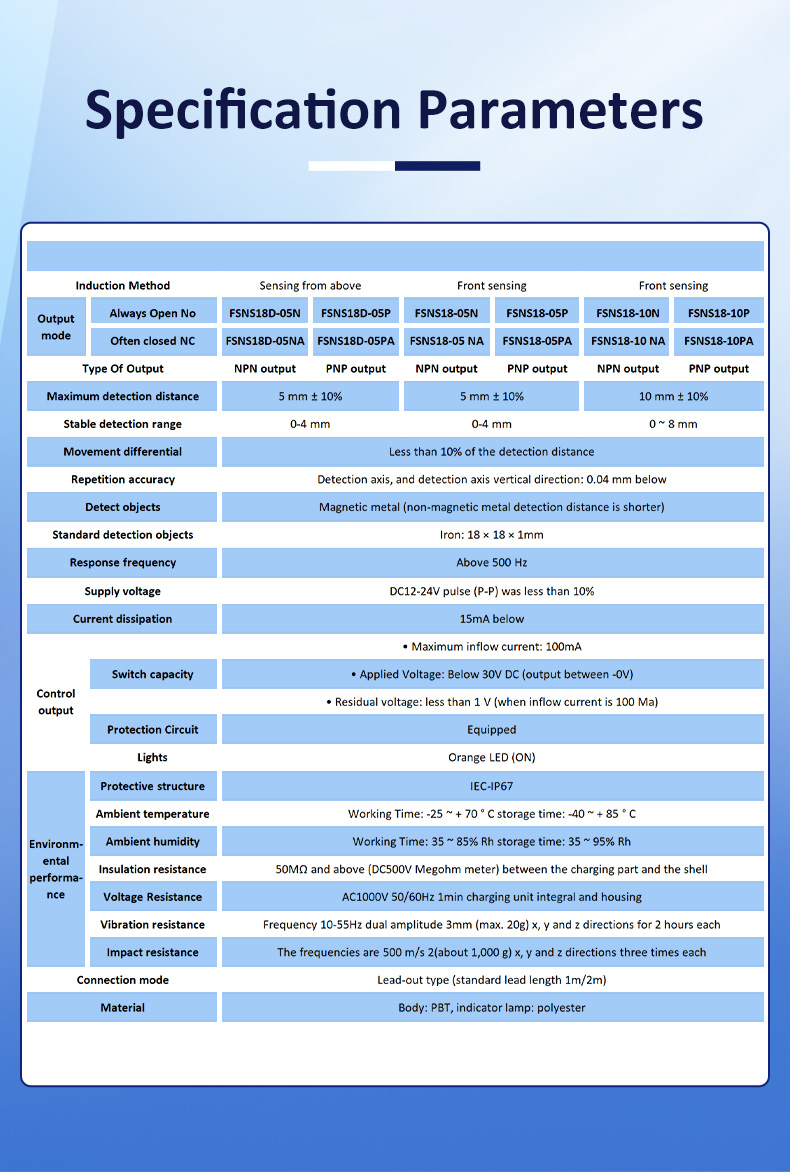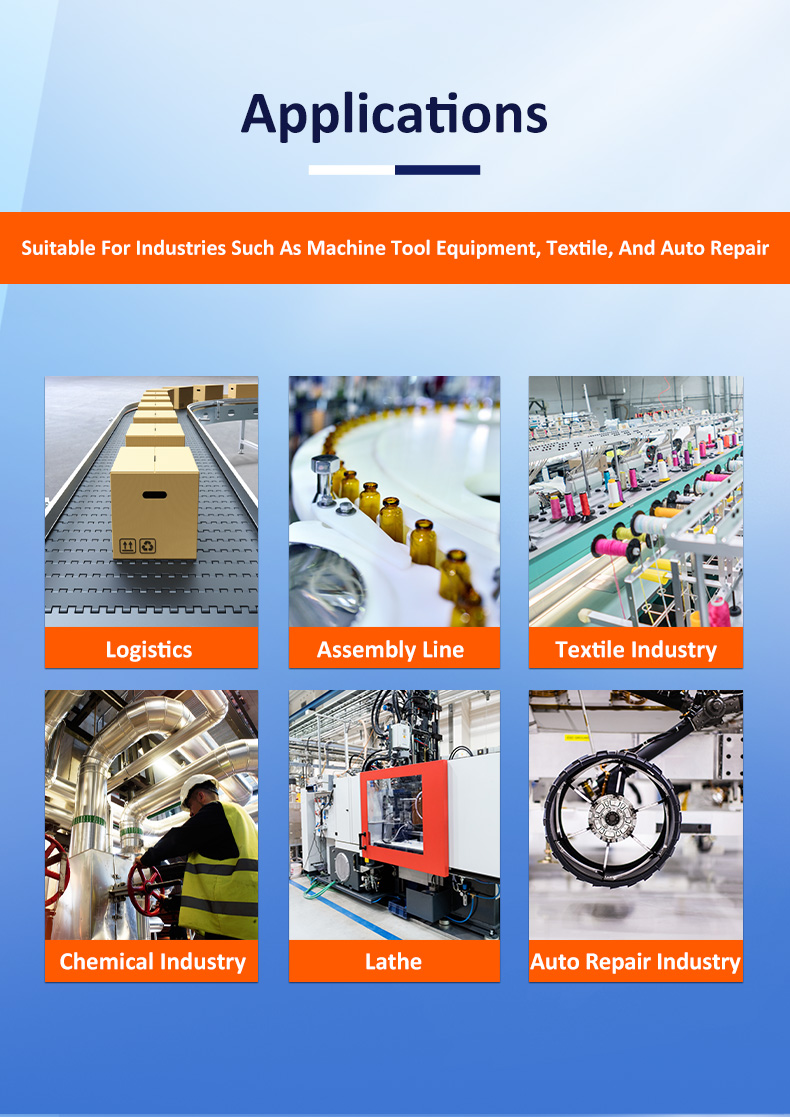 FSNS18D-05 został zaprojektowany z myślą o wszechstronności. Oto podstawowe scenariusze zastosowań: Obrabiarki i tokarki: Idealne do pozycjonowania narzędzi, ustawiania głowicy rewolwerowej i wykrywania położenia krańcowego. Jego niezawodność zapewnia dokładność obróbki i chroni kosztowny sprzęt. Przemysł tekstylny: Używany do wykrywania pęknięć przędzy, monitorowania położenia czółenka krosna i liczenia rolek tkaniny. Odporny na kłaczenie i wibracje. Naprawa samochodów i montaż samochodów: Idealny do pozycjonowania zrobotyzowanych uchwytów spawalniczych, weryfikacji obecności części na osprzętach oraz wykrywania zacisków i przyrządów. Linie logistyczne i montażowe: Doskonałe do wykrywania palet, obecności obiektów w systemach sortowania i liczenia pudeł na przenośnikach. Przemysł chemiczny: Solidna obudowa może wytrzymać narażenie na wiele chemikaliów, dzięki czemu nadaje się do przesyłania informacji zwrotnej o położeniu zaworu i wykrywania poziomu w nieagresywnych środowiskach.