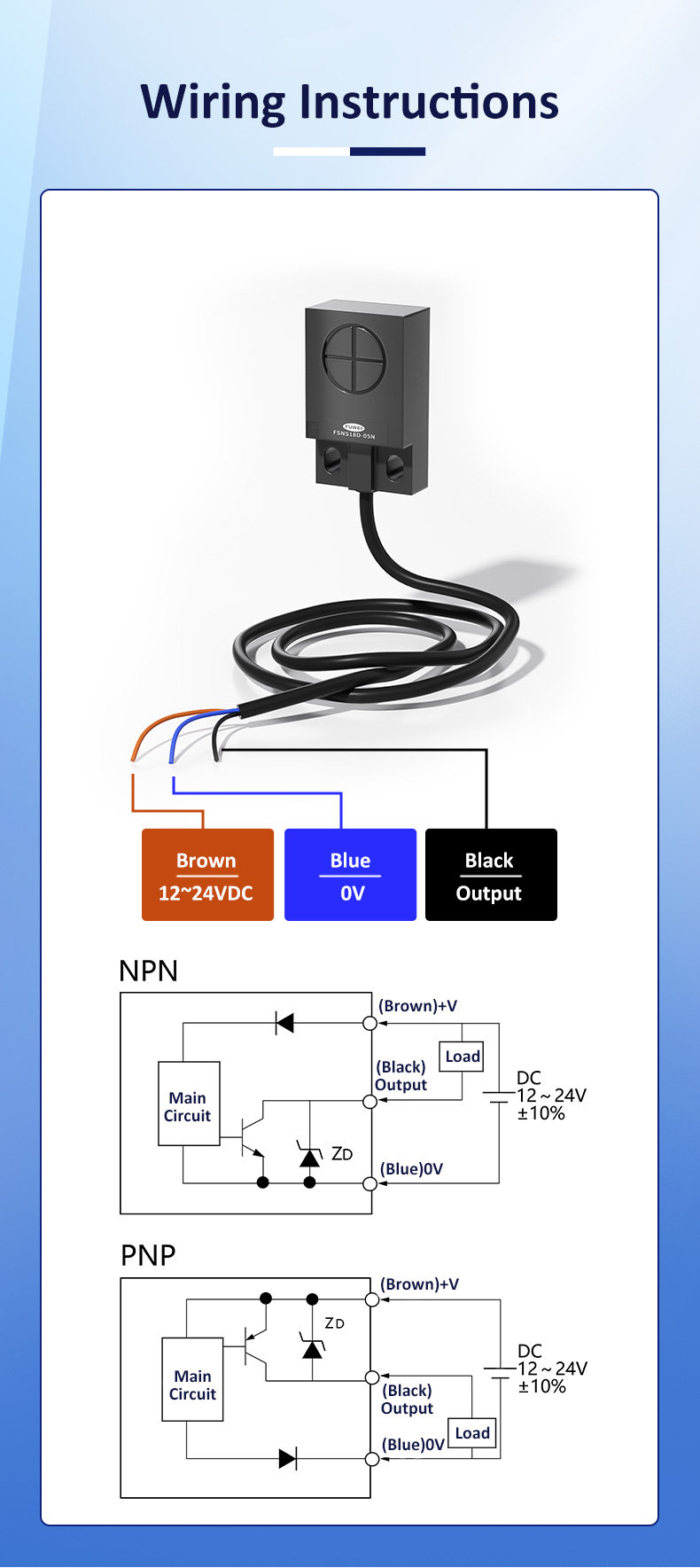 Odp.: „D” zazwyczaj oznacza konkretną konfigurację wyjścia (np. NPN normalnie otwarty). Sprawdź arkusz danych lub skonsultuj się z naszym zespołem sprzedaży, aby dowiedzieć się, jakiego wariantu potrzebujesz.
